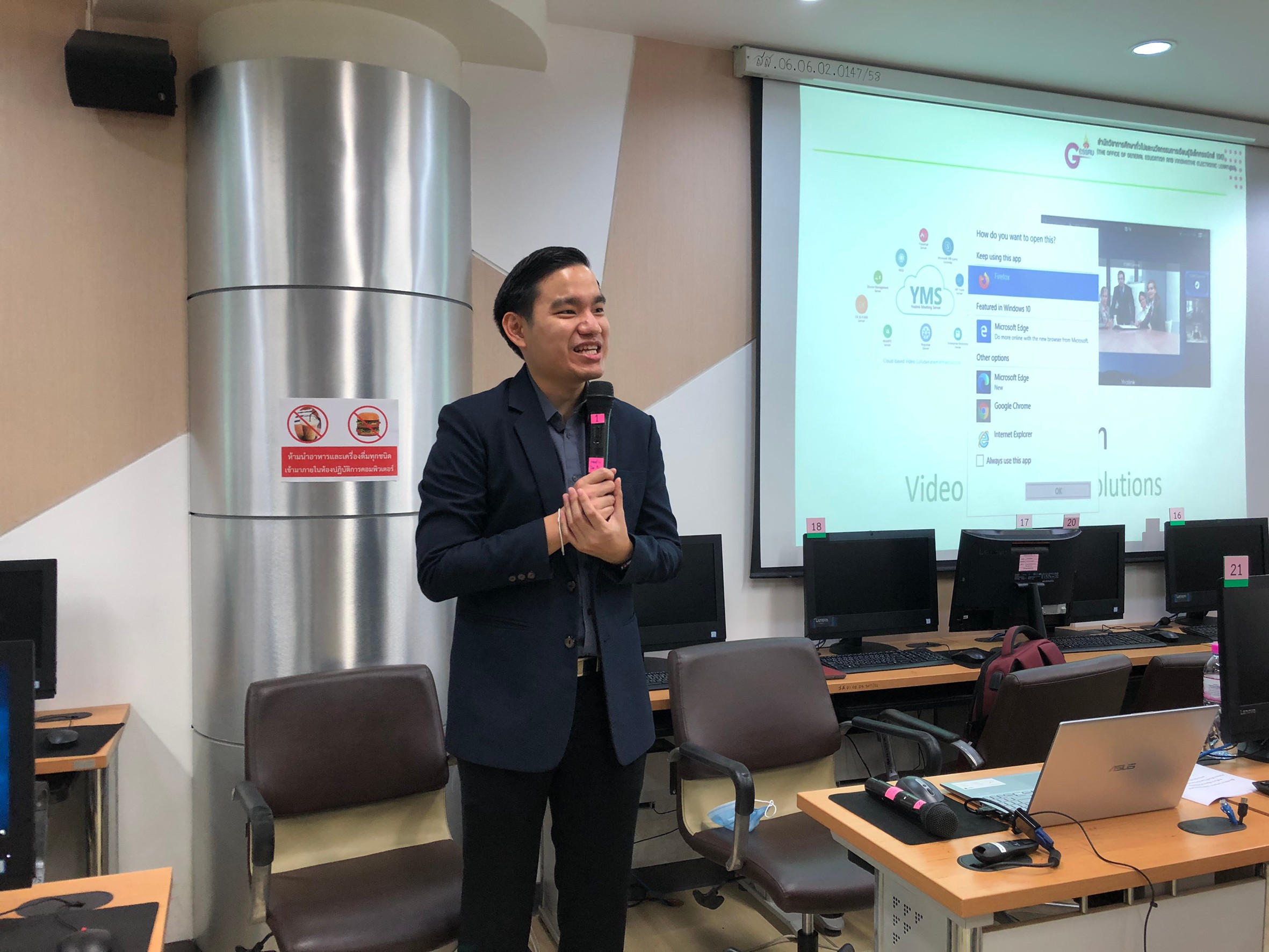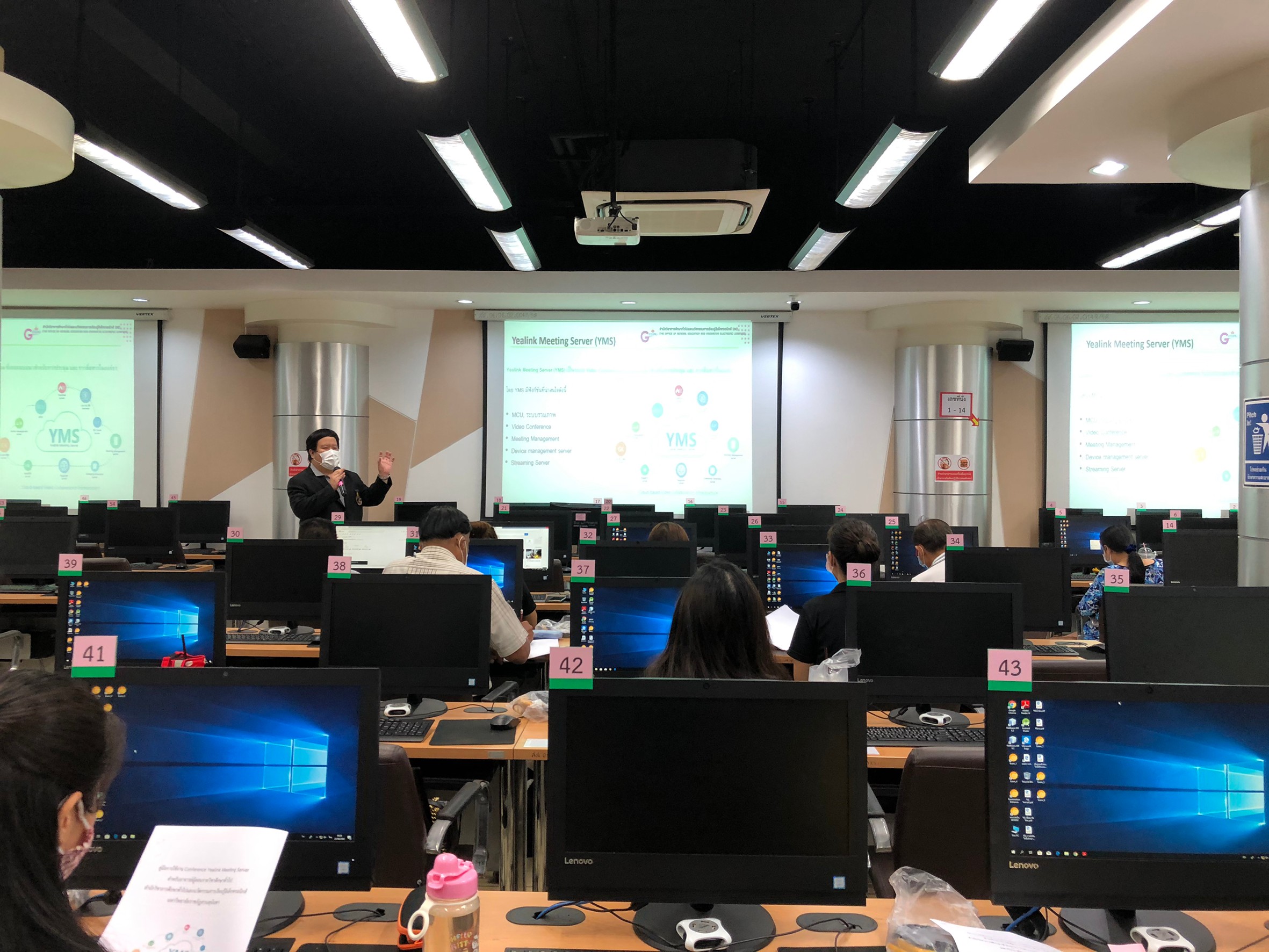 On 25 June 2020, the Office of General Education and Electronic Learning Innovation by Ajahn Abhisit Rattana Traanurak Deputy Director of Research and Development, Learning Management Innovation Is the chairman of the training program for Yealink Conference for general education course teachers In this training, the objective is to use various information technology to facilitate instructors according to the policy of the university. At Computer Lab 3111, Building 31, Floor 1