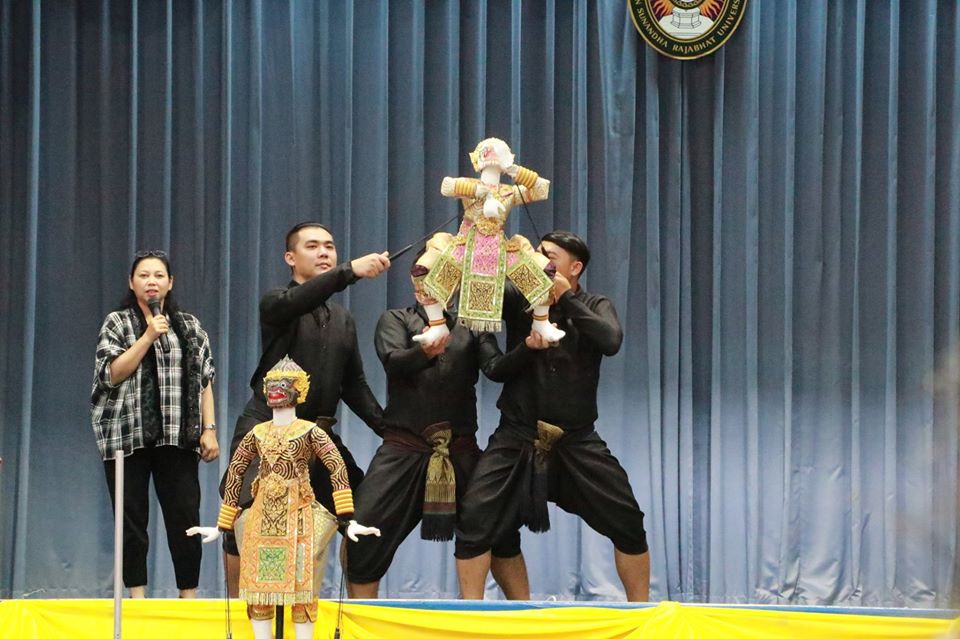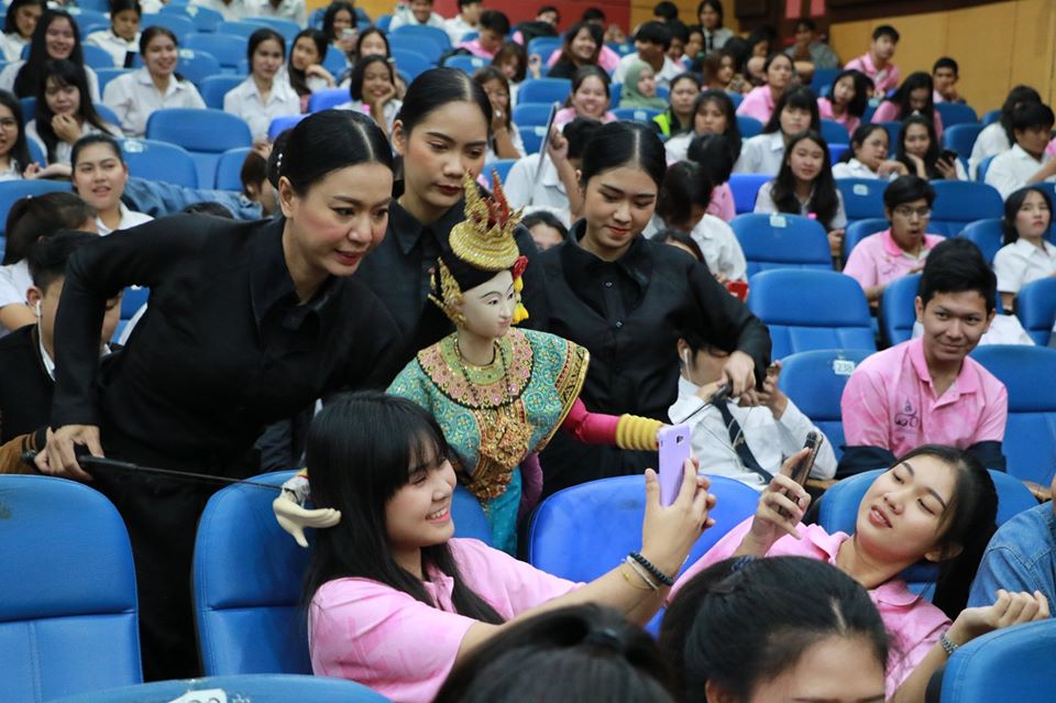 that honored to lecture by Khun Yupin Kunkanit (Joe Louis puppet Theater) Puppet Teacher of Traditional Thai Puppet Theater Lecture in general education course titled "How to watch the performance to be aesthetic" between 11.00 a.m. - 02.00 p.m. in Classroom 1701, Sunanthanusorn Auditorium.