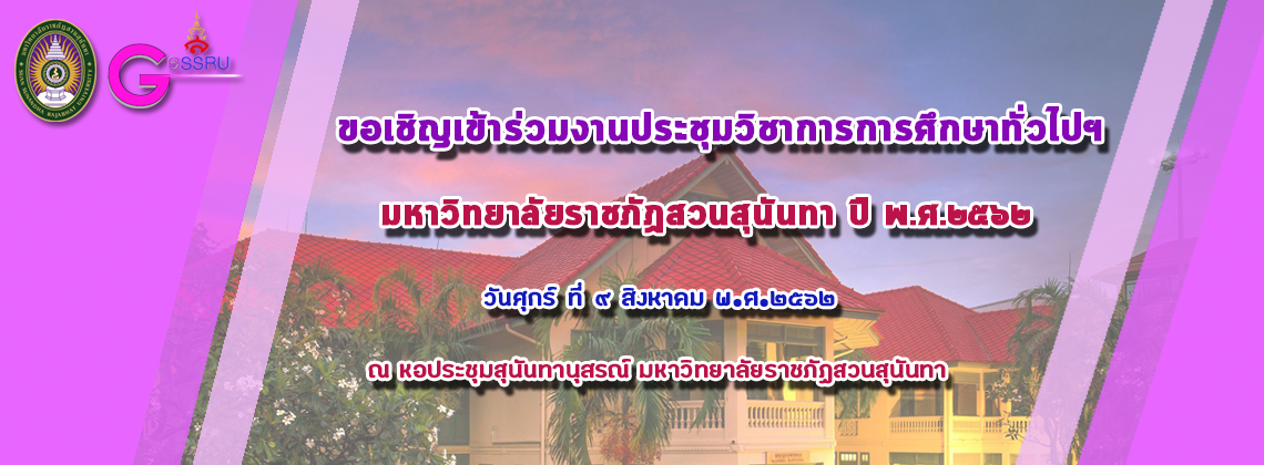 เปิดรับสมัครบทความจำนวนจำกัด (100 บทความ) เพื่อนำเสนองานประชุมวิชาการการศึกษาทั่วไปฯ มหาวิทยาลัยราชภัฏสวนสุนันทา ปี พ.ศ.2562 ตั้งแต่วันนี้ – วันที่ 8 กรกฎาคม พ.ศ.2562