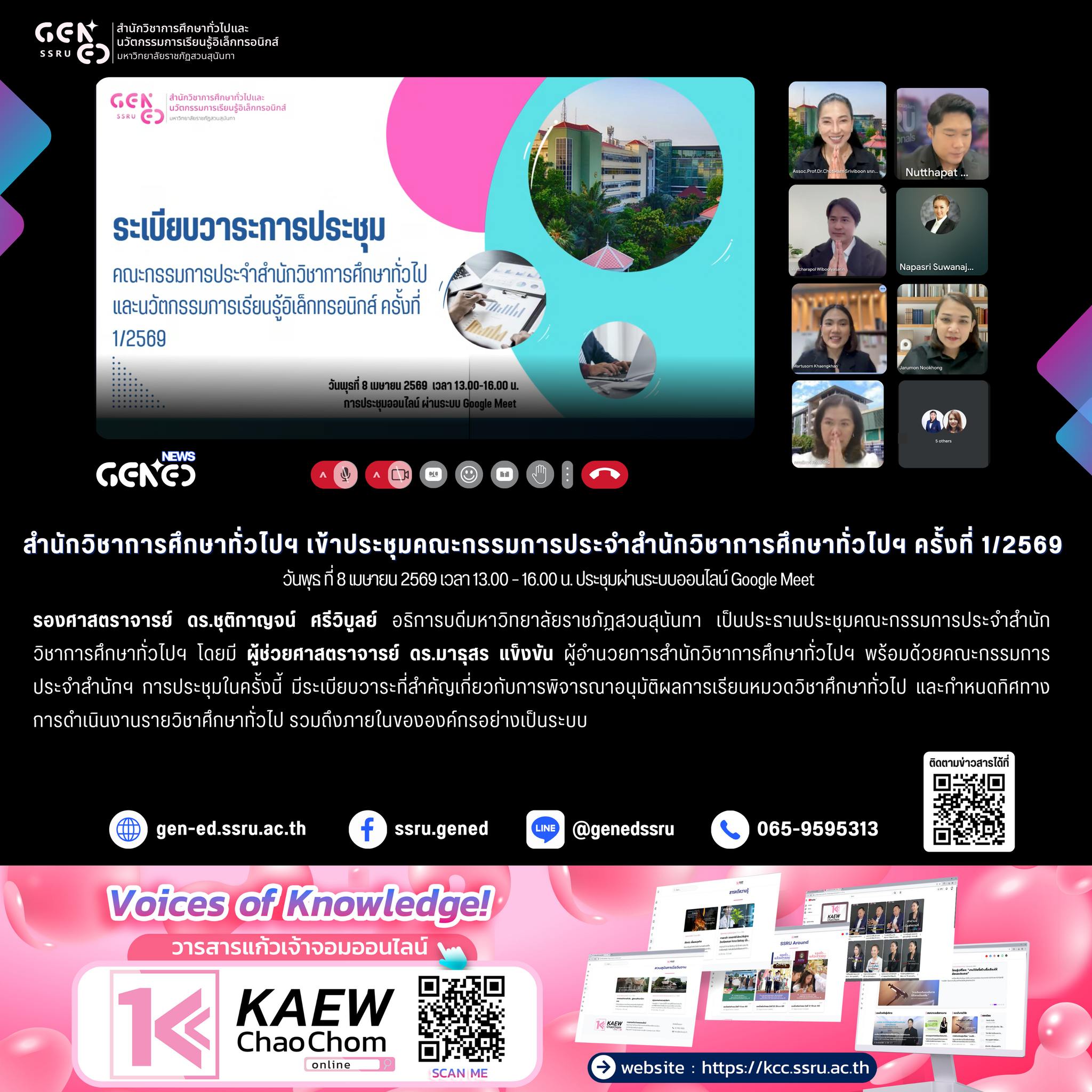 Associate Professor Dr. Chutikarn Sriviboon, President of Suan Sunandha Rajabhat University, presided over the meeting. Assistant Professor Dr. Martusorn Khaengkhan, Director of the Office of General Education, together with the committee members, attended the meeting.