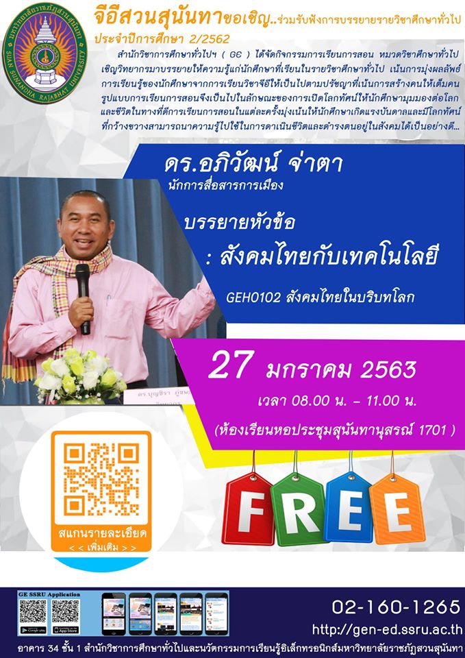 ดร.อภิวัฒน์ จ่าตา นักการสื่อสารการเมือง บรรยายหัวข้อ : สังคมไทยกับเทคโนโลยี