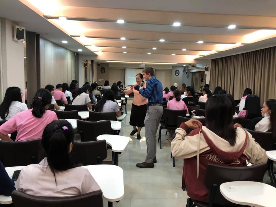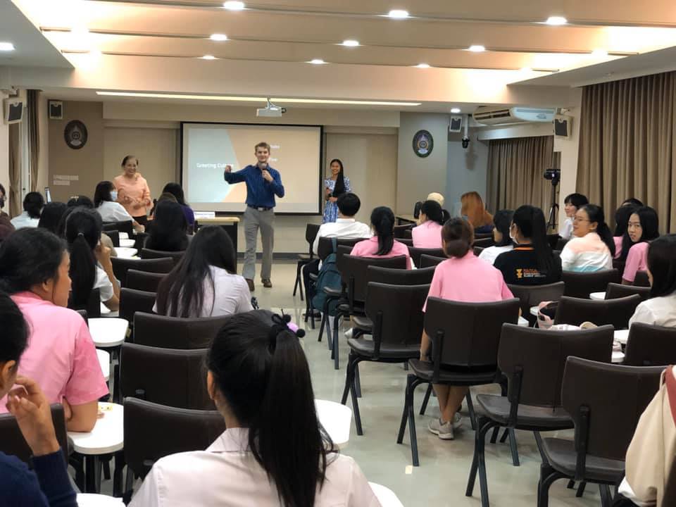 วันที่ 29 มกราคม 2563 สำนักวิชาการศึกษาทั่วไปและนวัตกรรมการเรียนรู้อิเล็กทรอนิกส์ ได้จัดการบรรยายกิจกรรมการเรียนการสอน หมวดวิชาศึกษาทั่วไป โดยได้รับเกียรติจาก Mr.Michael Bond Headlee บรรยายหัวข้อ “Survival English for Thai Learners” เวลา 08.00 - 11.00 น. ณ ห้องเรียน 29201 อาคารสมาคมศิษย์เก่าสวนสุนันทา