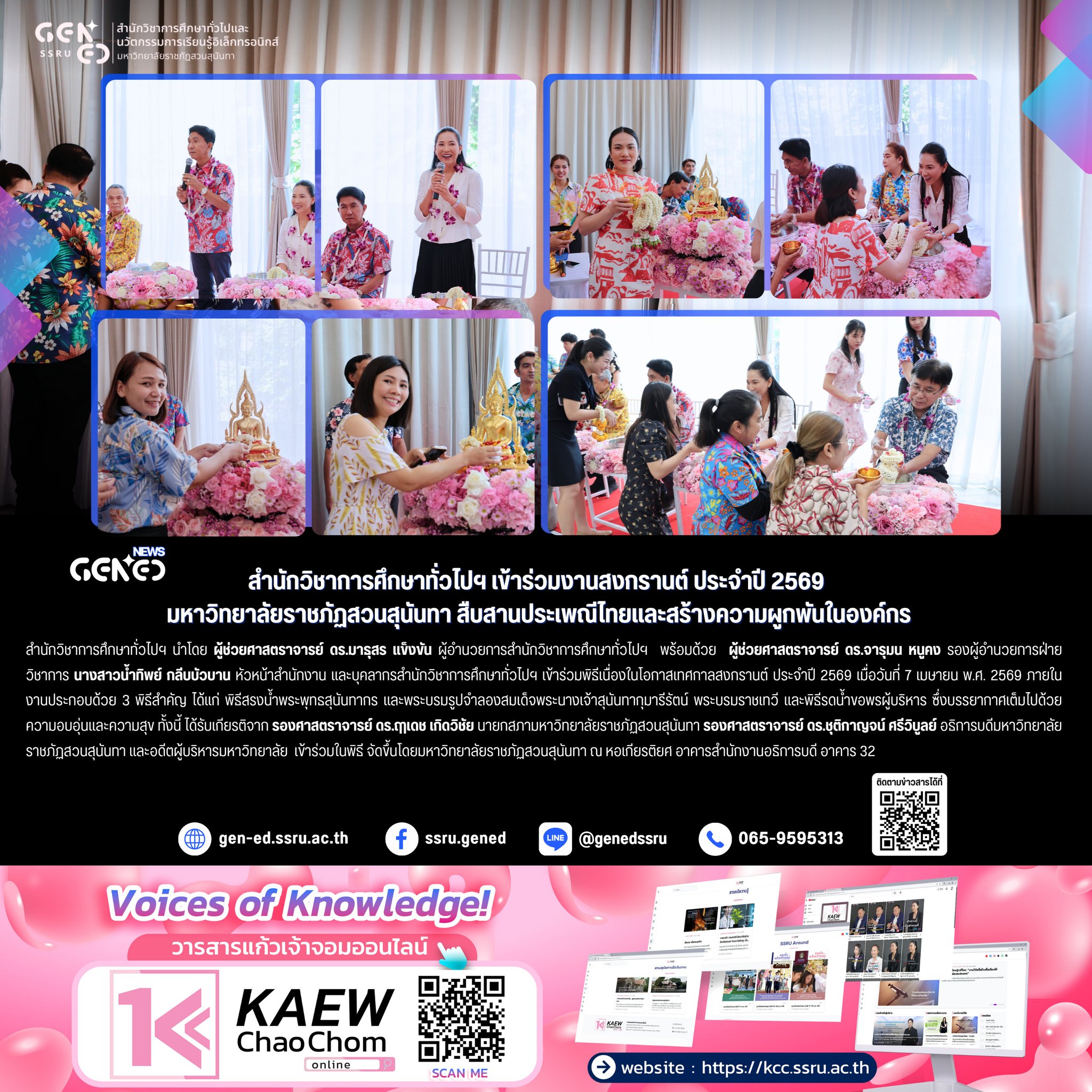 สำนักวิชาการศึกษาทั่วไปฯ เข้าร่วมงานสงกรานต์ ประจำปี 2569 มหาวิทยาลัยราชภัฏสวนสุนันทา สืบสานประเพณีไทยและสร้างความผูกพันในองค์กร