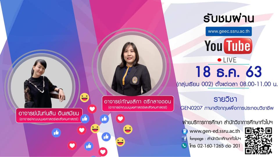 ติดตามข่าวสารเพิ่มเติมได้ที่ : www.gen-ed.ssru.ac.th