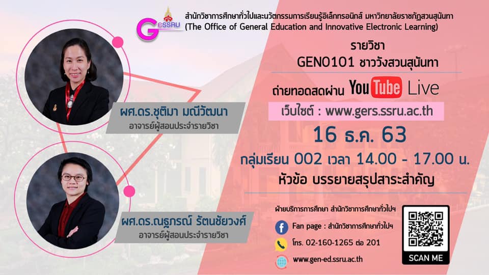 ติดตามข่าวสารเพิ่มเติมได้ที่ : www.gen-ed.ssru.ac.th