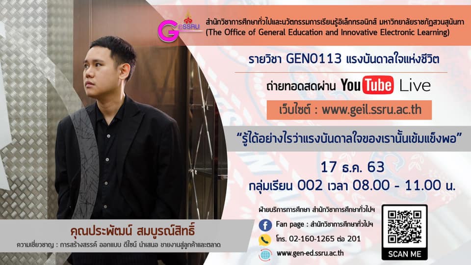 ติดตามข่าวสารเพิ่มเติมได้ที่ : www.gen-ed.ssru.ac.th