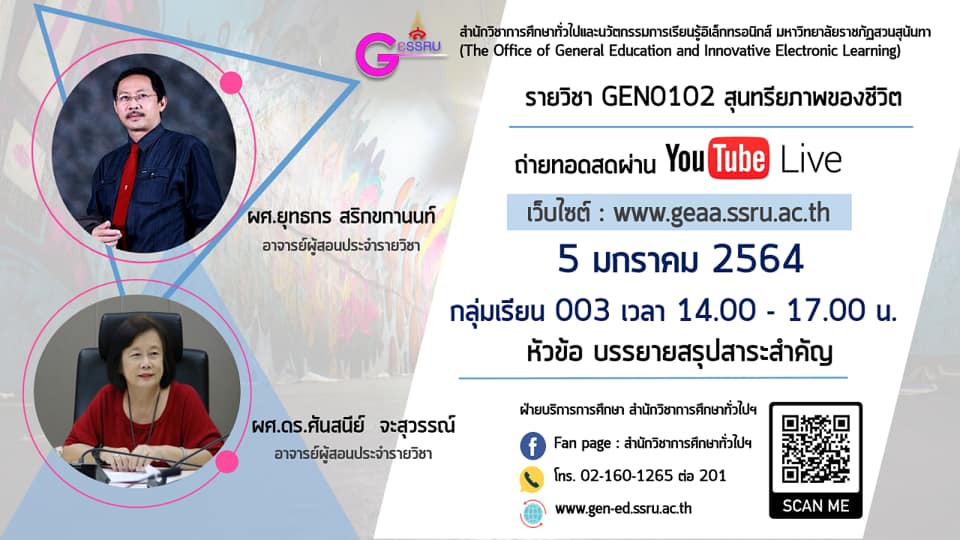 ติดตามข่าวสารเพิ่มเติมได้ที่ : www.gen-ed.ssru.ac.th