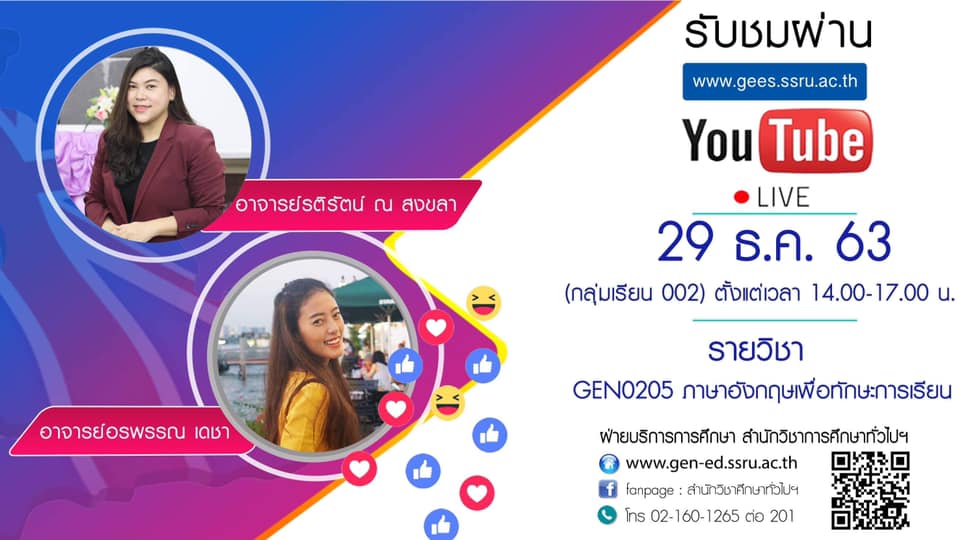 ติดตามข่าวสารเพิ่มเติมได้ที่ : www.gen-ed.ssru.ac.th