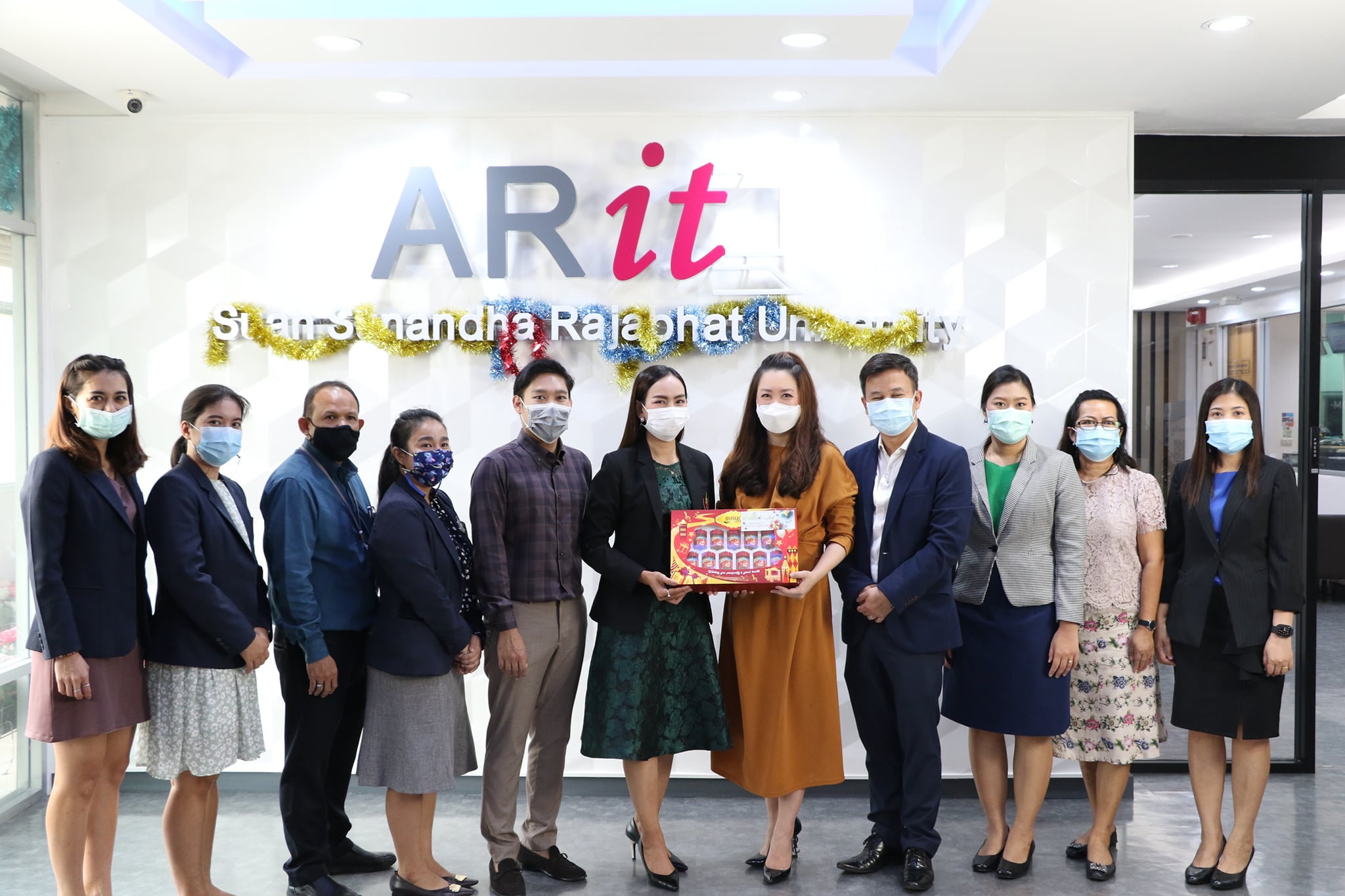 วันที่ 28 ธันวาคม 2563 สำนักวิชาการศึกษาทั่วไปและนวัตกรรมการเรียนรู้อิเล็กทรอนิกส์ นำโดย อาจารย์นภาศรี สุวรรณโชติ รักษาราชการแทนผู้อำนวยการสำนักวิชาการศึกษาทั่วไปฯ ผู้ช่วยศาสตราจารย์ณัฐภัทร แก้วรัตนภัทร์ รักษาราชการแทนรองผู้อำนวยการฝ่ายวิจัยและพัฒนานวัตกรรมการจัดการเรียนรู้ นายเปรม ธนไตรภพ หัวหน้าสำนักงาน และบุคลากรของสำนักฯ เข้ามอบของขวัญสวัสดีปีใหม่แด่ ผู้ช่วยศาสตราจารย์ ดร.ศิริลักษณ์ เกตุฉาย ผู้อำนวยการสำนักวิทยบริการและเทคโนโลยีสารสนเทศ