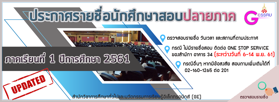 สอบปลายภาครายวิชาศึกษาทั่วไป ดาวน์โหลดเอกสาร >> รายชื่อสอบปลายภาค 1-61-ศูนย์การศึกษาอุดรธานี.pdf