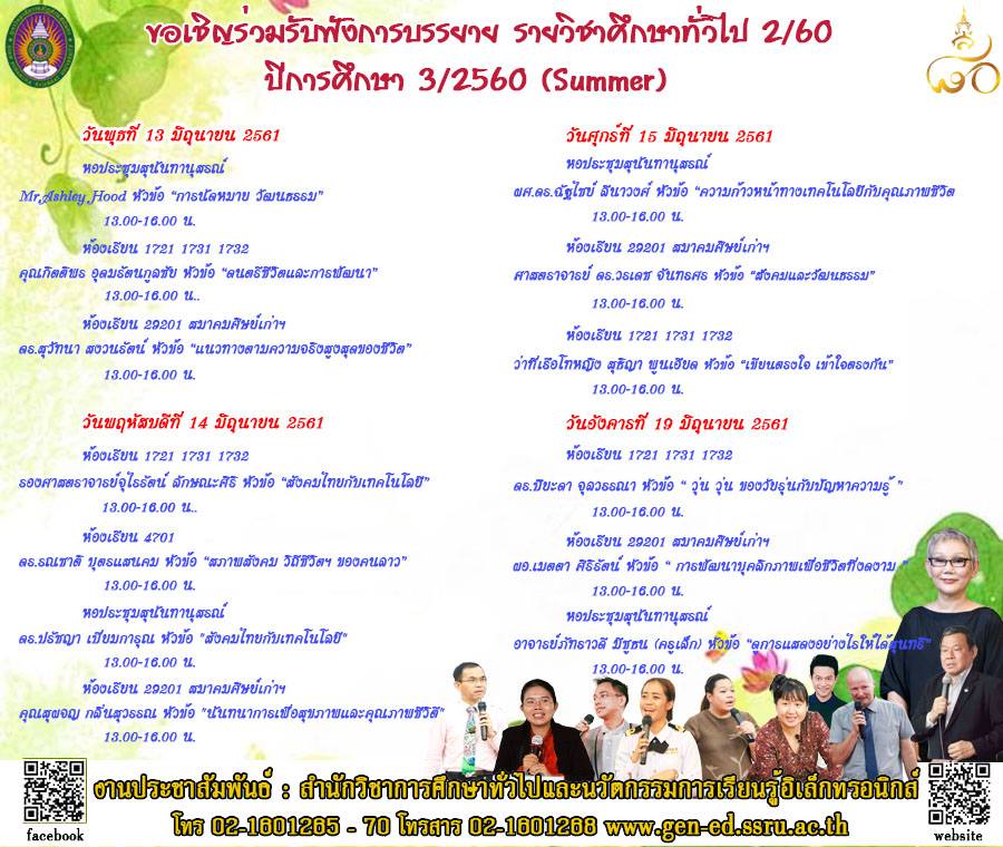 ซัมเมอร์นี้!! จีอีเชิญชวนเข้ารับฟังการรบรรยาย หมวดรายวิชาศึกษาทั่วไป ปีการศึกษา 3/2560 ประจำเดือนมิถุนายน