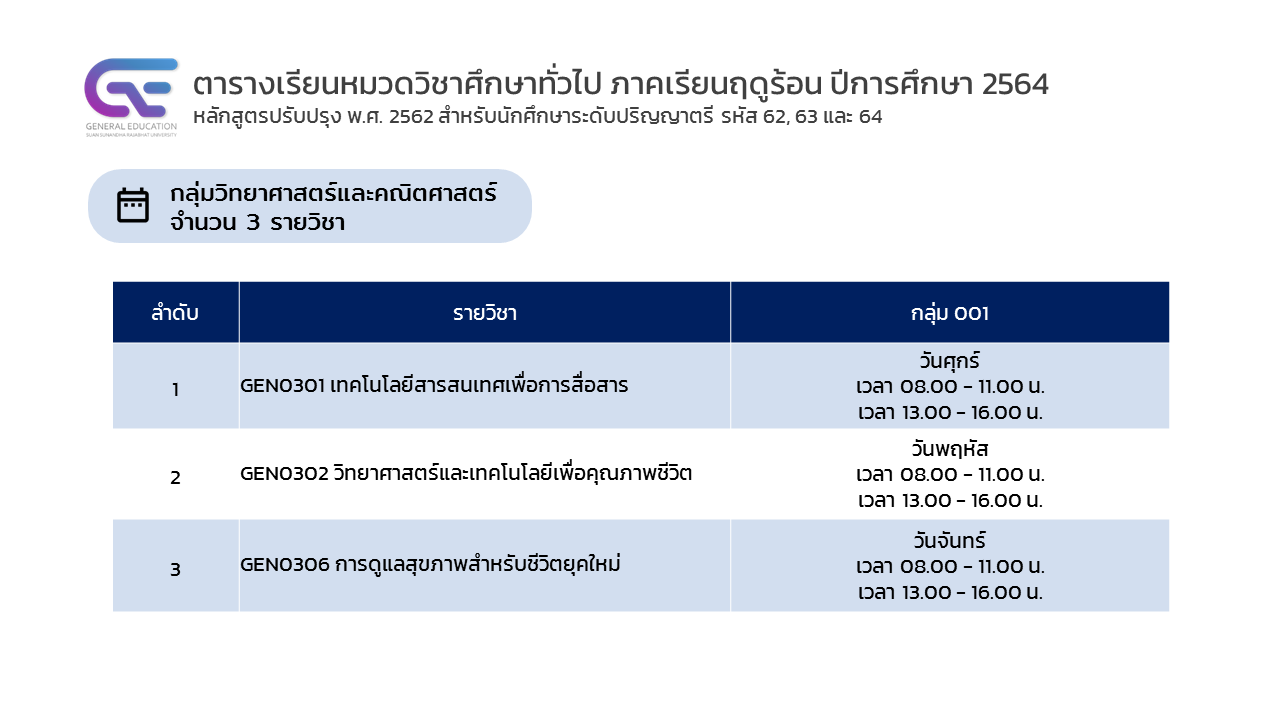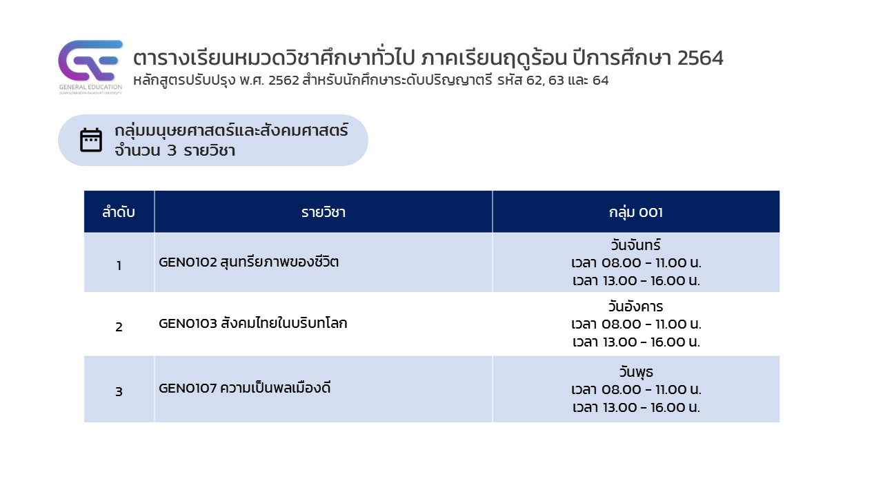ติดตามข่าวสารเพิ่มเติมได้ที่ : www.gen-ed.ssru.ac.th