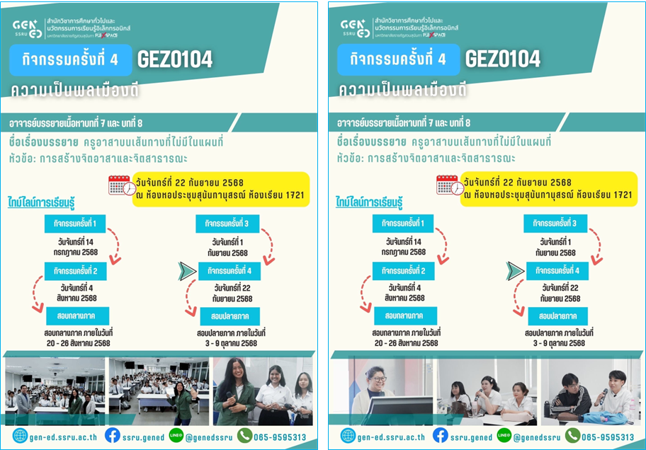 ภาพบรรยากาศการเรียน Gen Ed SSRU วันจันทร์ที่ 22 กันยายน 2568 ภาคเรียนที่ 1/2568