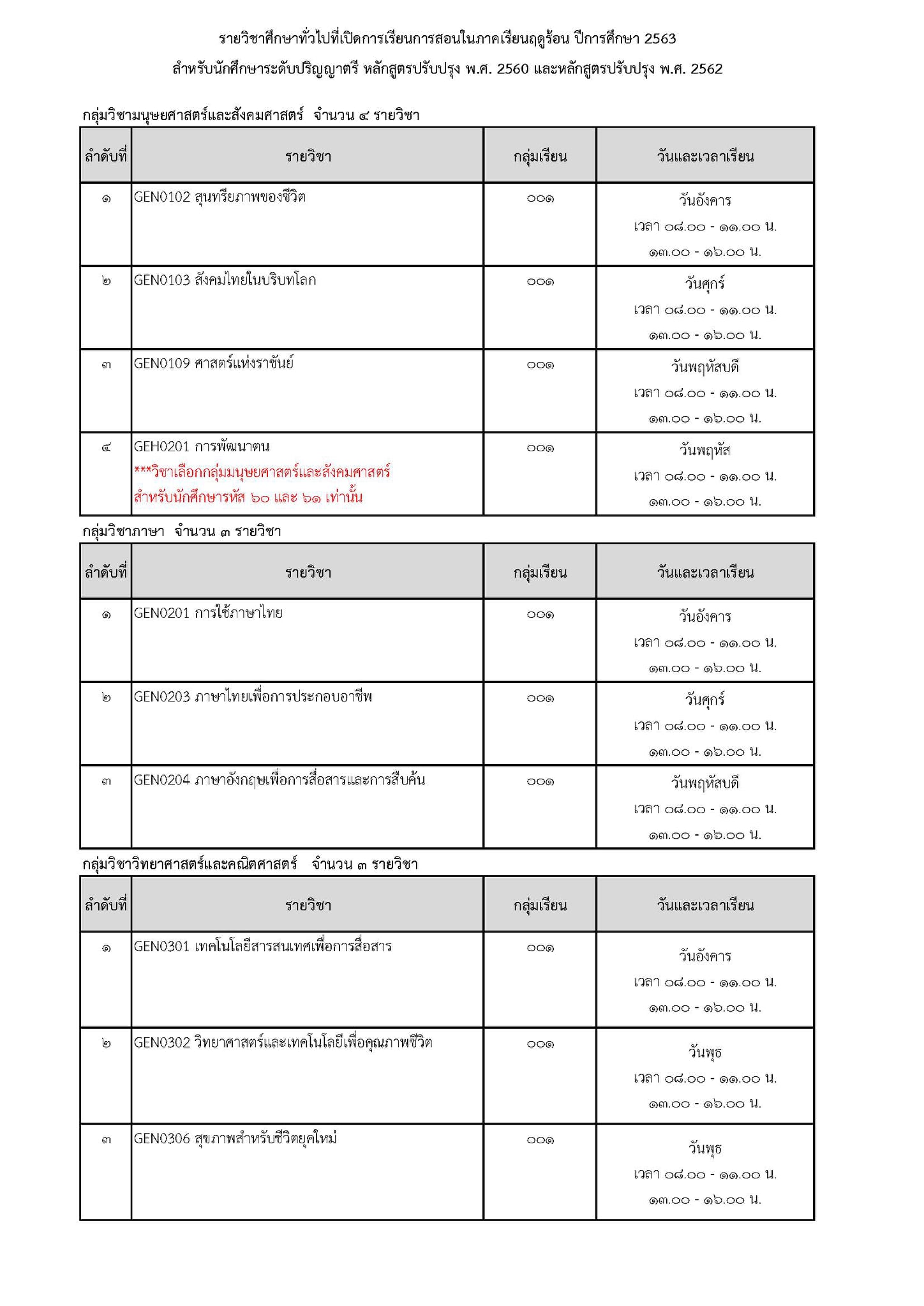 การจัดการเรียนรายวิชาศึกษาทั่วไป ประจำภาคเรียนฤดูร้อน ปีการศึกษา 2563