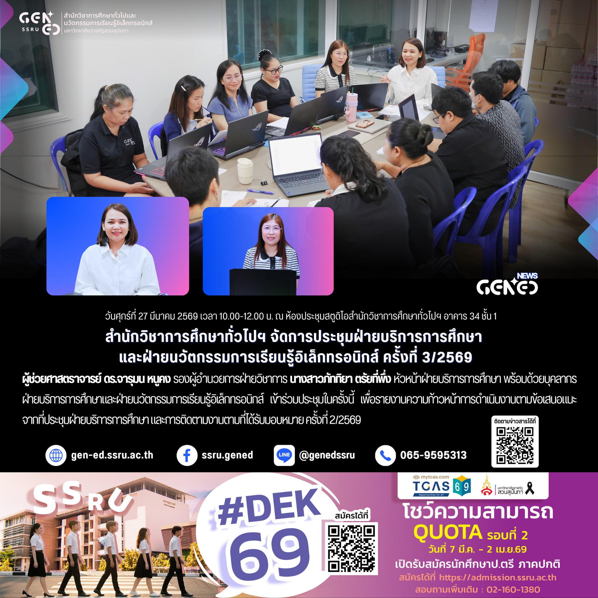 สำนักวิชาการศึกษาทั่วไปฯ จัดการประชุมฝ่ายบริการการศึกษา และฝ่ายนวัตกรรมการเรียนรู้อิเล็กทรอนิกส์ ครั้งที่ 3/2569