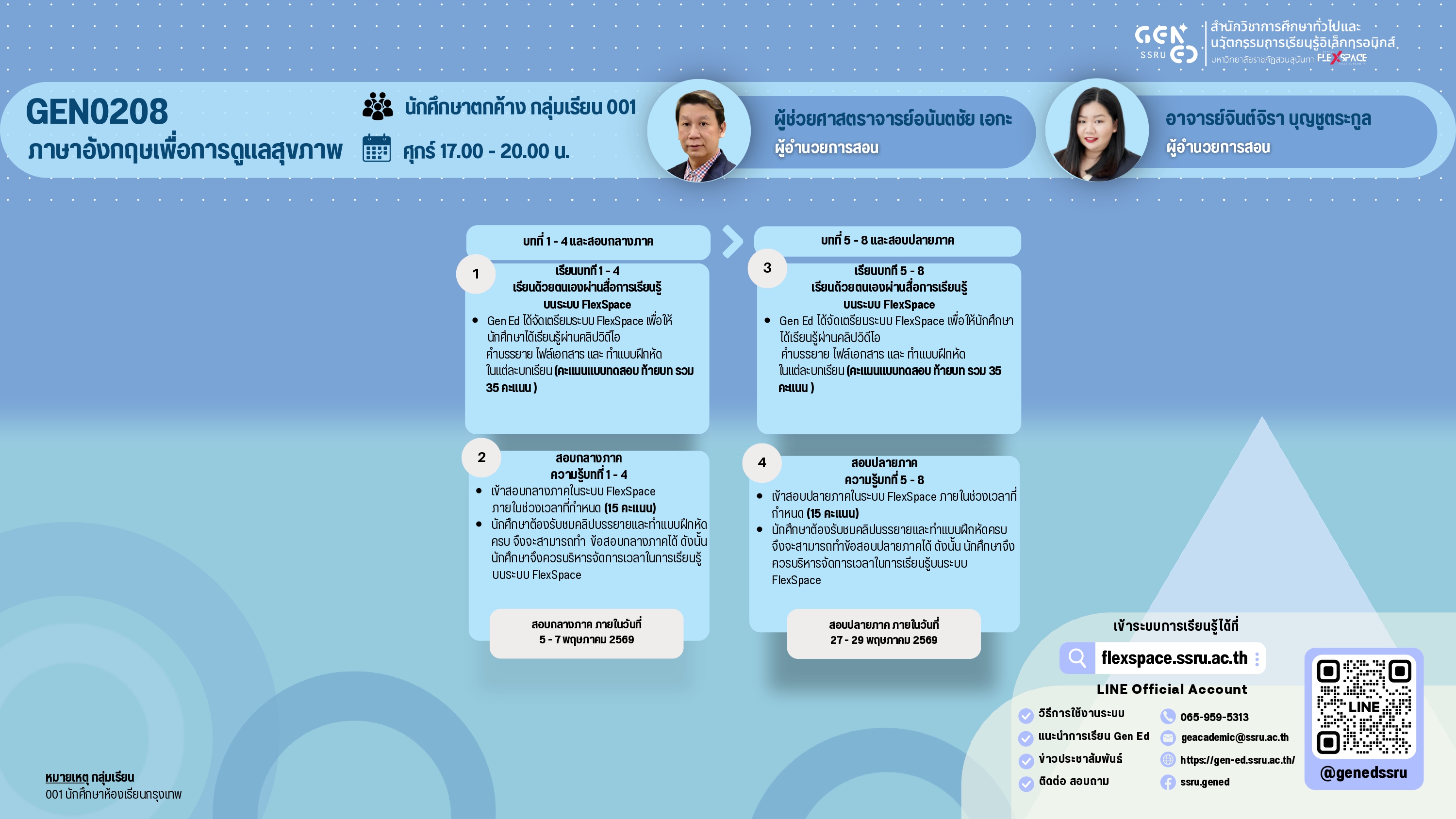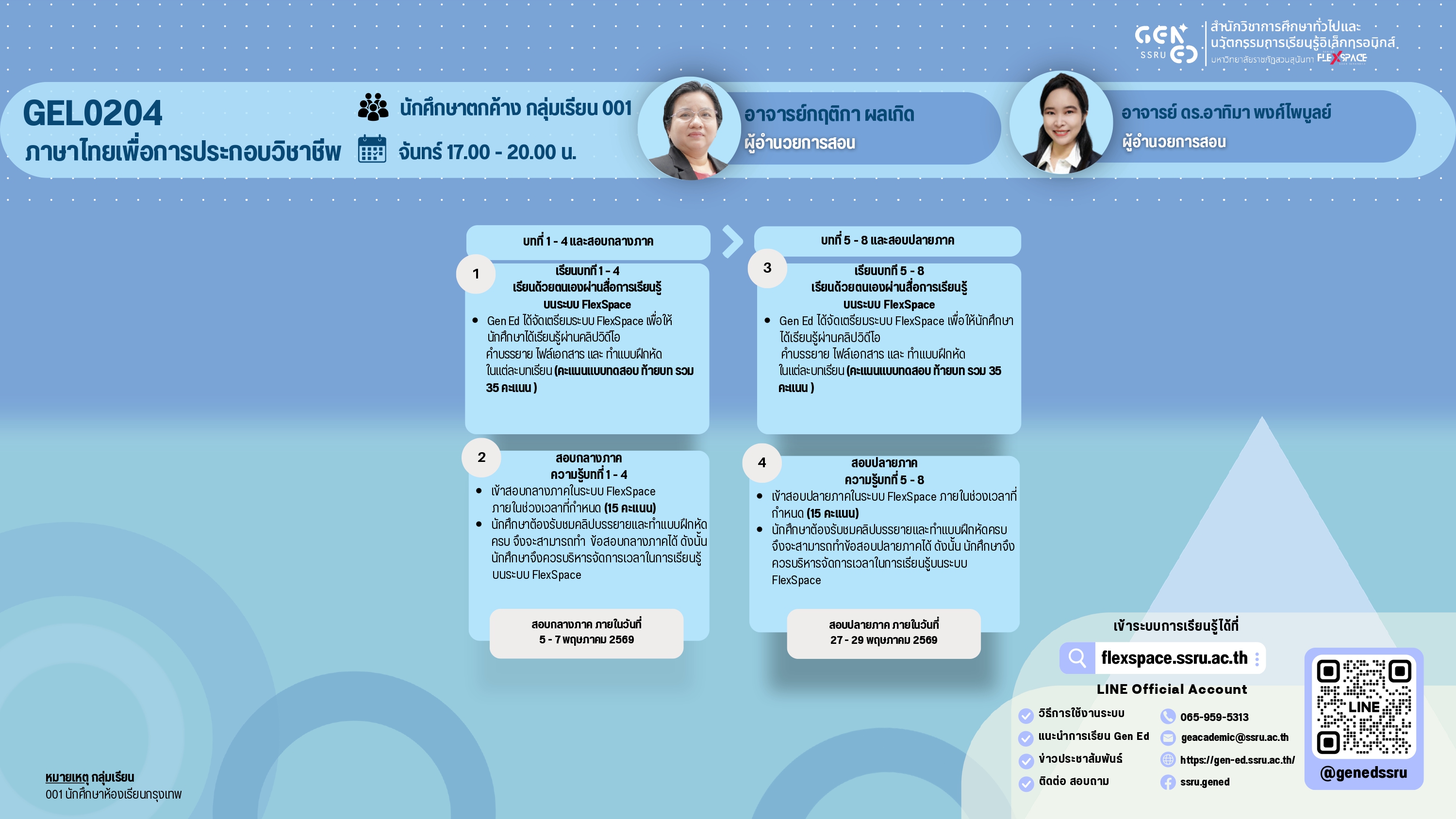 นักศึกษาภาคปกติ GEN0113 แรงบันดาลใจแห่งชีวิตGEN0207 ภาษาอังกฤษเพื่อการประกอบอาชีพGEN0304รู้เท่าทันดิจิทัลนักศึกษาภาคพิเศษ GEN0113 แรงบันดาลใจแห่งชีวิตGEN0207 ภาษาอังกฤษเพื่อการประกอบอาชีพGEN0304รู้เท่าทันดิจิทัลนักศึกษาตกค้างGEN0107 ความเป็นพลเมืองดีGEN0201 การใช้ภาษาไทยGEN0208ภาษาอังกฤษเพื่อการดูแลสุขภาพGEN0314โยคะGEN0317ศาสตร์และศิลป์แห่งอาหารชาววังGEL0204ภาษาไทยเพื่อการประกอบวิชาชีพ